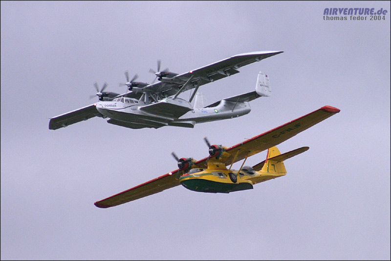 Die Chance beide Flugboote zur gleichen Zeit in der Luft zu haben wurde genutzt. Das Display der Catalina und Do24 war am Vortag leider wegen des Wetters ausgefallen. Dafür bot sich am zweiten Tag ein einmaliges Bild.