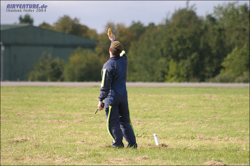 Für Samstag war das Shepherd Neame Parachute Display Team vorgesehen. Hier ein Mitglied beim Messen der Windgeschwindigkeit - danach wurde das Display gecancelt:-(