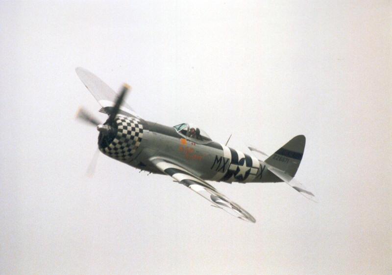 Wie schon erwähnt ist die Flying Legends Air Show in Duxford berühmt für die große Zahl an Raritäten die im Flugprogramm gezeigt werden. Ein besonders gutes Beispiel hierfür ist diese Republic P-47 D Thunderbolt, welche dem Gastgeber der Airshow, der Fighter Collection in Duxford gehört. (www.avnet.co.uk/tfc). Diese Thunderbolt ist die einzige flugfähige Maschine dieses Typs in ganz Europa!