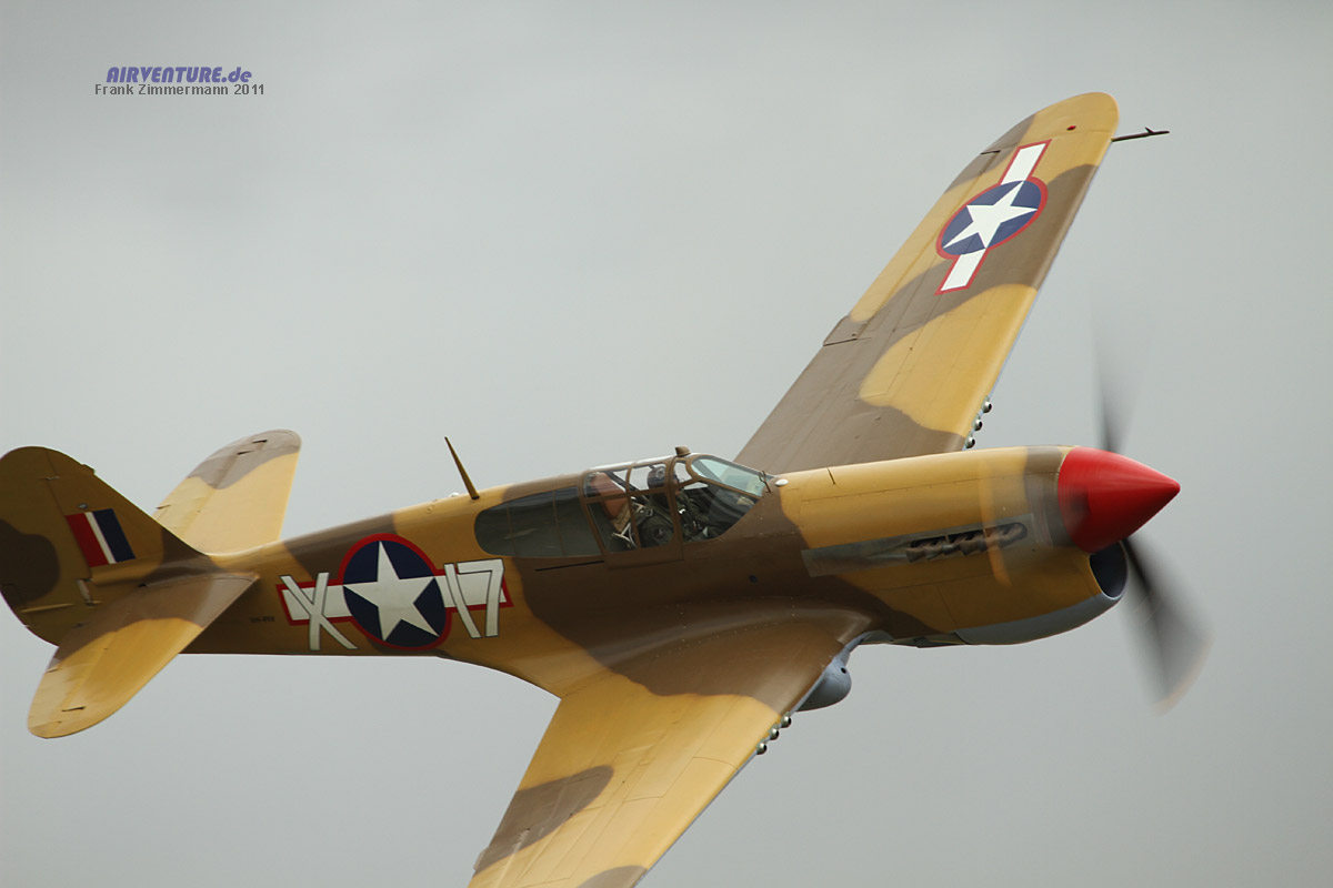 Wie die Skyraiders, so waren auch die P-40 mit drei Maschinen vertreten. Neben der P-40N von Christian Amara und der P-40B war ein Neuzugang zu bestaunen. Eine P-40F mit Namen Lee's Hope. Kein geringerer als Steve Hinton flog die Maschine während des Displays . |