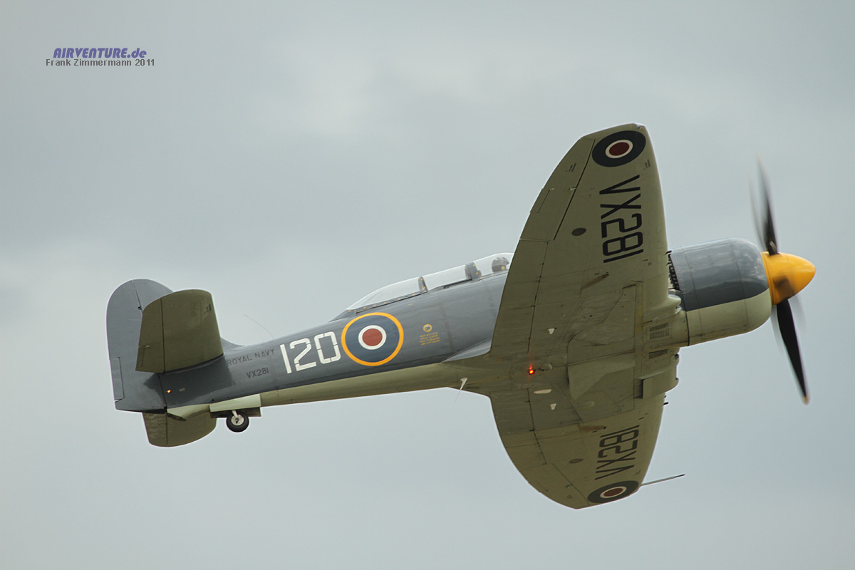 Der Royal Navy Historic Flight steuerte auch noch eine Sea Fury T 20 bei. Die Version T 20 wurde meist zur Ausbildung oder als Zielschlepper eingesetzt . |