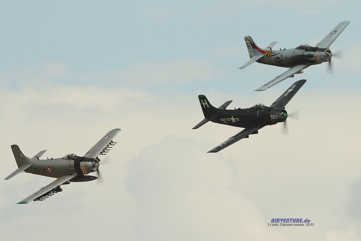 Die Hawker Sea Fury zählt zu den eher seltenen Warbirds. Eine Formation von drei Maschinen ist daher nicht selbstverständlich. |