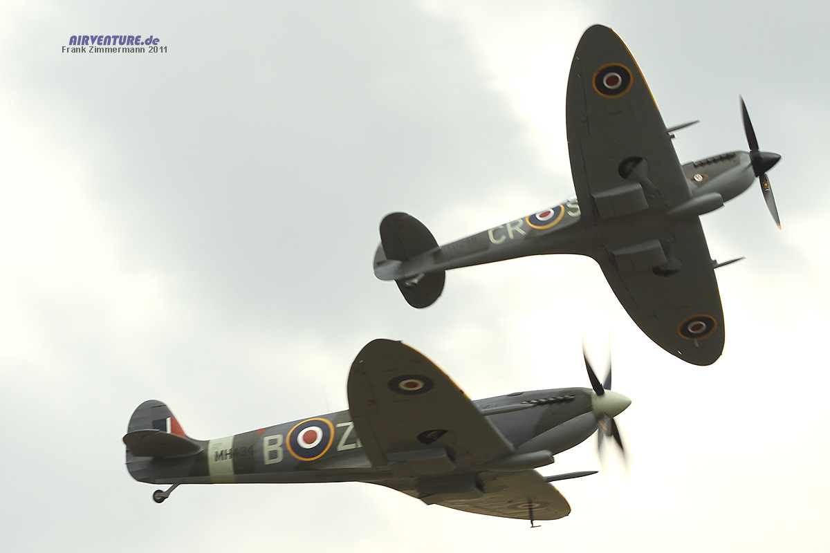 Ausserdem waren noch vertreten: Jak-9, Hurricane , B-17, Morane D 3801, Lancaster und eine seltene Fairey Swordfish. Wie schon 2009, so war auch dieses Jahr das einzige Mustangaerobatikteam wieder in Duxford zu sehen, wenn auch nur mit zwei Maschinen. Der Platz in der dritten Maschine, die sonst Jim Beasley innehatte, sollte eigentlich Steve Hinton ausfüllen. Aber Steve Hinton verzichtete. Ed Shipley und Dan Friedkin boten trotzdem als Duo dem Publikum eine Aerobatikshow der Extraklasse. Dafür wurden extra zwei Mustangs aus Amerika überführt. Ein weiteres Highlight war der Auftritt dreier Bf 109 ( Buchons ). Neben der Buchon der Aircraft Restoration Company war noch eine Maschine der Air Fighter Academy aus Deutschland erschienen. Und Nummer drei gehört Richard Lake.