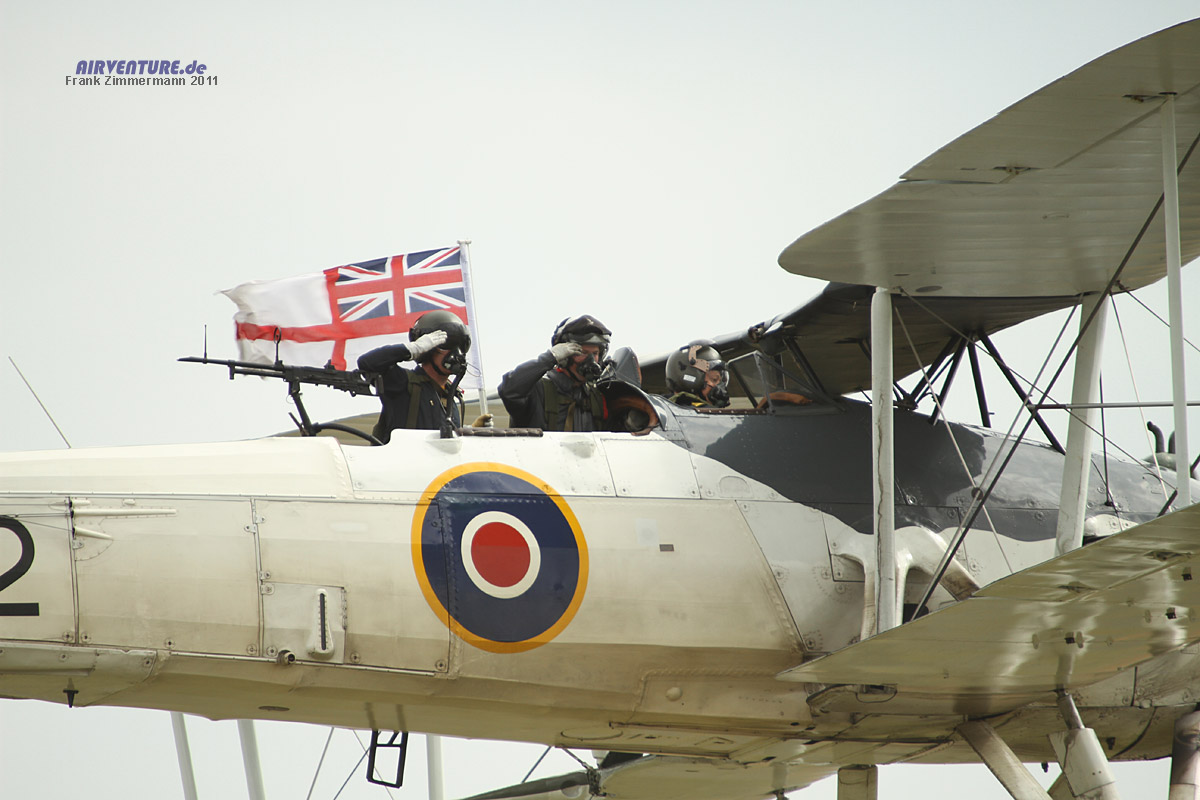Neben den Flugzeugen aus der Zeit des 2. Weltkrieges sieht man ab und zu auch welche, die 30 Jahre zuvor ihre Bahnen über Europa zogen. Mit etwas Pyrotechnik wurde der angedeutete Luftkampf zwischen einer Fokker DR. 1 und einer Nieuport spannend untermalt. Auch vier Doppeldecker aus der Zeit zwischen den beiden Weltkriegen waren am Boden und in der Luft zu bestaunen. Zwei Hawker Nimrods sowie eine Hawker Hind bzw. Demon standen stellvertretend für diese Zeit.