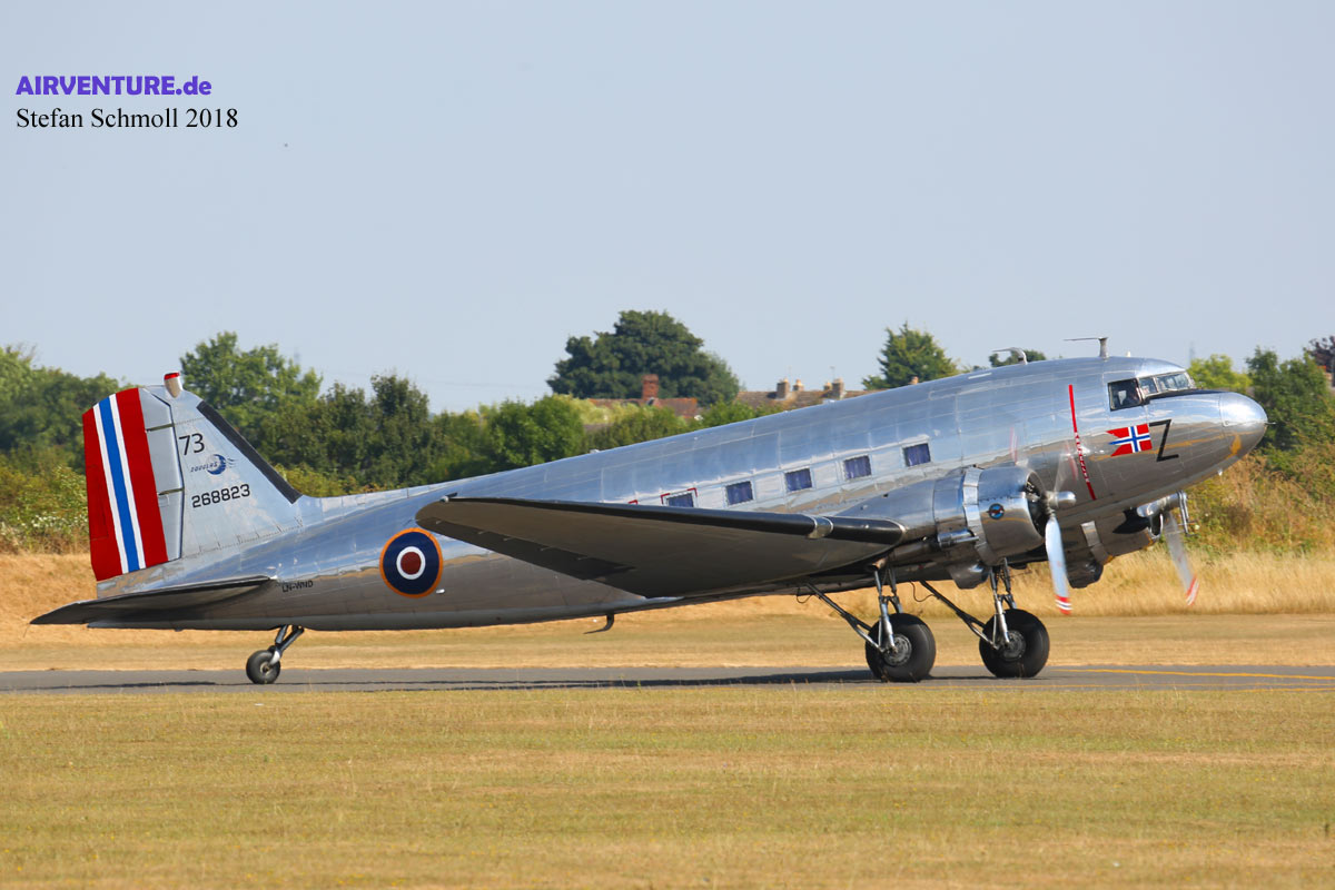 Eine zweite DC-3 kam aus Norwegen zur Show. Die LN-WND wird dort von einer Gruppe Enthusiasten betrieben und reist zu Shows in ganz Europa. |
