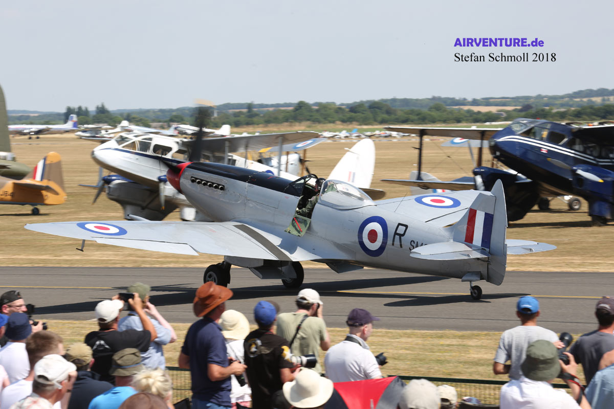 15! Spitfire waren bei Flying Legends 2018 gelistet. Darunter waren mehrere der vor wenigen Jahren aus Wracks aufgebauten frühen MK.I. Einige nahmen tatsächlich an der Luftschlacht um England teil - doch dazu später mehr. |