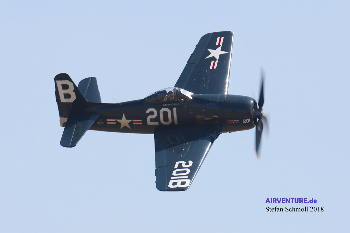 Aber auch die 1951 gebaute F4-U5N ist ein alter Hase als Warbird. Sie kam ebenfalls 1986 im Container aus den Vereinigten Staaten - allerdings mit Ziel La Ferté Alais südlich von Paris. Nach langer Renovation flog sie in diesem Frühjahr erstmals wieder. |