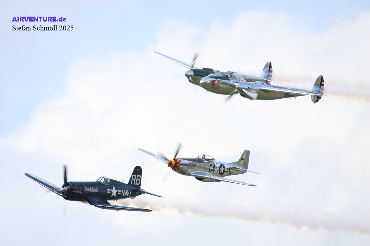 In der Saison 2026 kommt erstmals neben diesen drei amerikanischen Ikonen die in Farben der "Blue Angels" lackierte Grumman Bearcat mit zum Einsatz. Man darf gespannt sein, wie sich die Flying Bulls dann präsentieren. Zusätzlich macht sich die Lockheed P-38 gemeinsam mit der mächtigen Douglas DC-6 auf eine große Reise: Im Juli 2026 geht's über den Atlantik nach Oshkosh zum legendären Airventure!