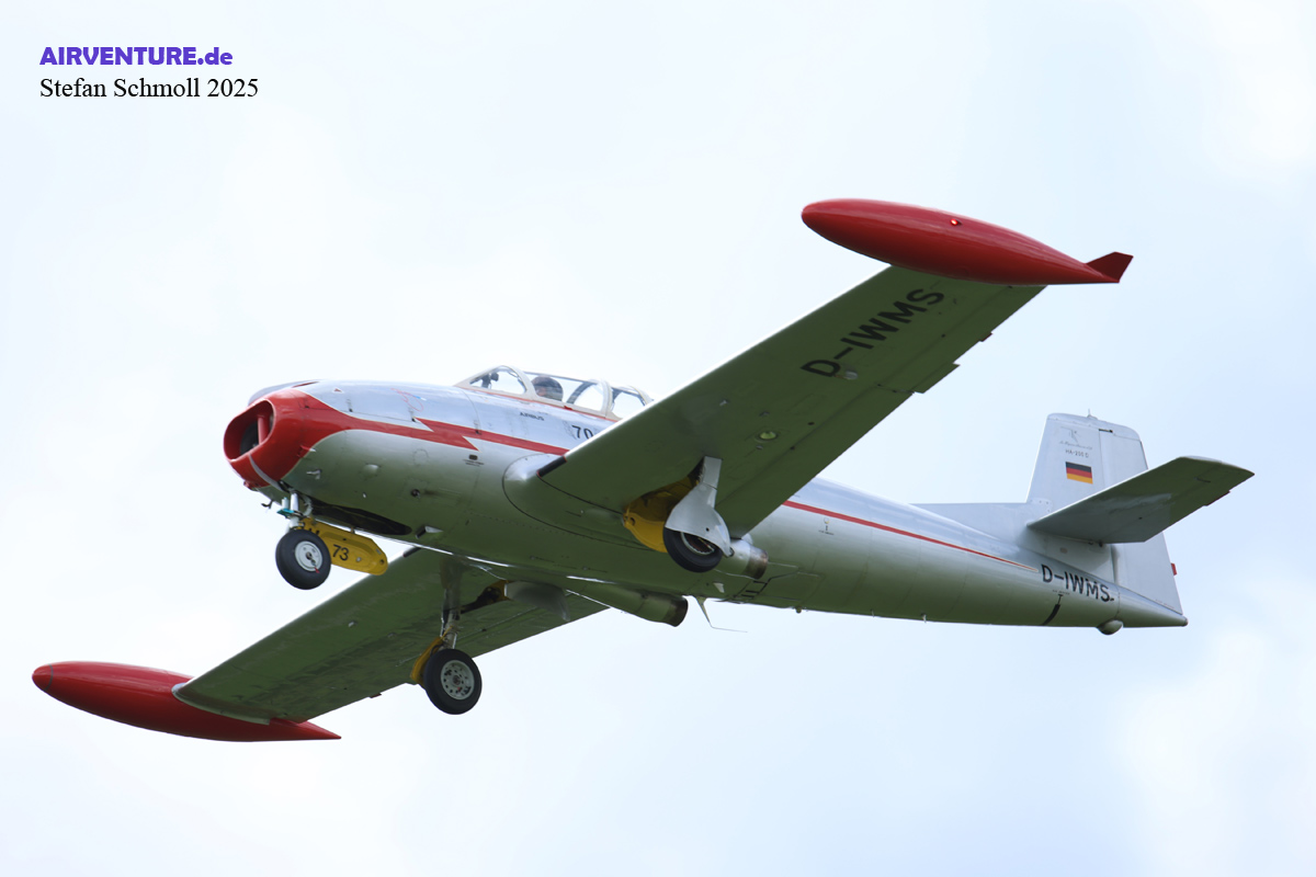 ... Auf der Hahnweide 2025 war jedoch ein weiterer historischer Jet der Partner der Schwalbe. Und auch die Hispano HA-200 Saeta passt zur Stiftung. Schließlich wurde der spanische Trainer Mitte der 1950er Jahre unter Leitung von Willy Messerschmitt konstruiert.