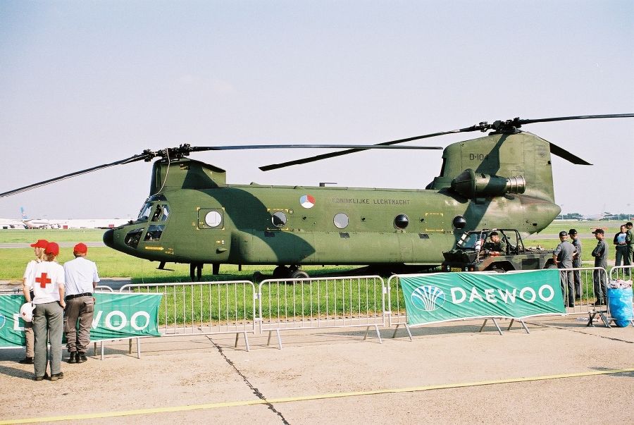 carrry 24 infured persons on stretchers and 2 doctors. This Chinook shown on the
