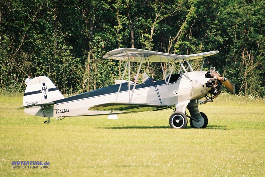 mehre Exemplare der legendären deutschen Bücker-Doppeldeckerschulflugzeuge. Dieses