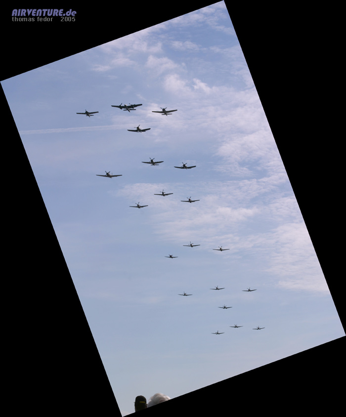 Im Sekundentakt startende Warbirds, danach mehrere monumentale Überflüge um gegen Ende des Balbo das ganze Feld nach und nach wieder einschweben zu sehen.