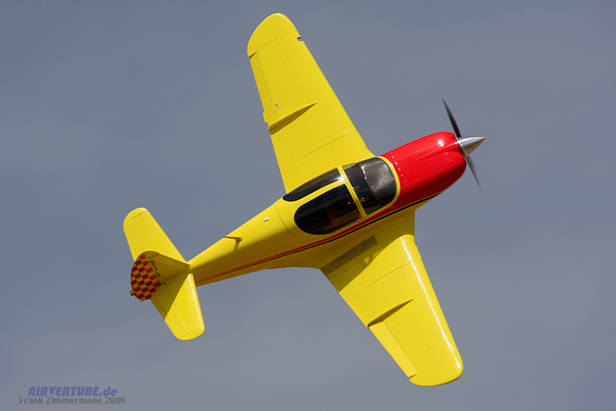 Ein bunter Farbtupfer auf einer von millitärischem Fluggerät dominierten Show war diese "Swiftfury" des Herstellers Lo Presti Inc. Der Ganzmetall-Zweisitzer hat ein Lycoming IO-360 Triebwerk mit 200 PS und erreicht Geschwindigkeit von etwa 355 km/h.