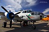 Eine Beech C-45 Expeditor im Camouflage-Anstrich. Im Hintergrund sieht man noch den schwarzen Rauch der Pyrotechnik, die im Rahmen der Show gezündet wurde .