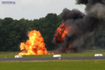 Auch an Pyrotechnik wird bei den Open Dagen nicht gespart. Ein simulierter Flugplatzangriff wird eindrucksvoll duch explodierende Strohballen unterstützt, die später von einer Chinook gelöscht werden. |