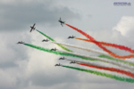 Nahezu alle Kunstflugteams verwenden heute Rauchanlagen. Dies dient nicht nur zur Erkennung der Flugbahn vom Boden aus, sondern auch zur besseren (früheren) Sichtung der Kunstflieger untereinander. Die Frecce Tricolori benutzen eine besonders leistungsstarke Anlage, die Unmengen an farbigem Rauch produziert. |
