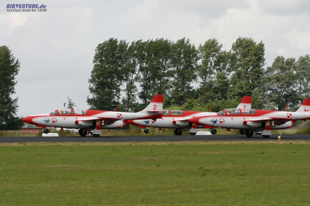 Seit Ihrer Gründung verlassen sich die Polen auf den TS-11 Iskra Strahltrainer. Die verwendeten Maschinen befinden sich bis auf die nachgerüstete Rauchanlage im Originalzustand. |