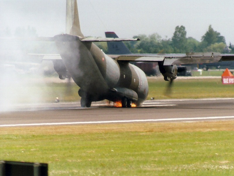 war. Mit weit geöffneten Klappen präsentierte die Transall ihre kraftvollen Turboprop