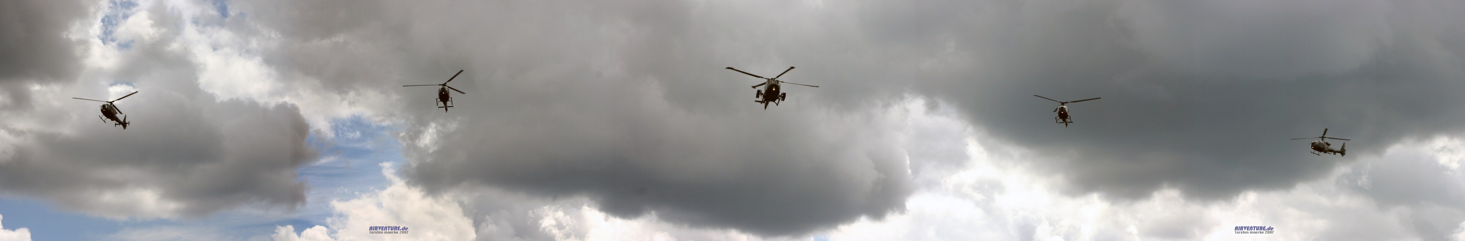Panorama der Blue Eagles im Flug. Zusammengesetzt aus fünf Einzelbildern.