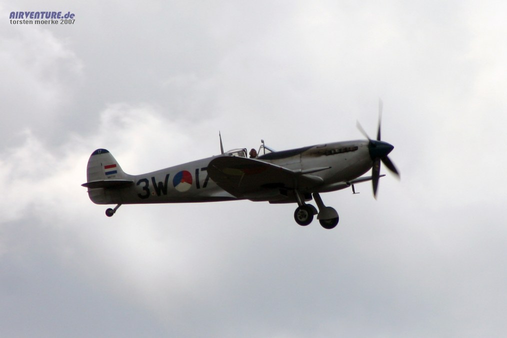 Die 3W-17 ist eine Supermarine 361 Spitfire LF9B. Eigentümer der Maschine ist der Stichting Klu Historiche Vlucht.