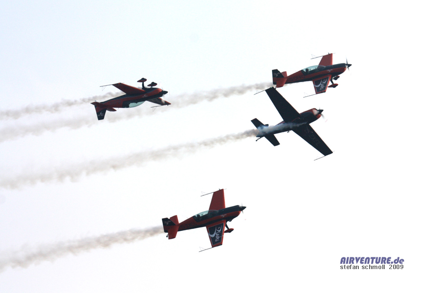 Geflogen werden die Extra 300 allesamt von ehemaligen Red Arrows Piloten. |