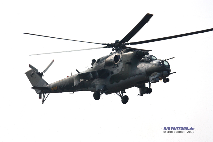 Eine Mi-24 Hind aus Tschechien gehört seit einigen Jahren zum "festen" Programmteil in Hechtel. Auch nach mehrfacher Vorführung beeindruckt Sie immer wieder als einer der wenigen Hubschrauber im Flugprogramm.