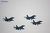 Eine Formation aus vier belgischen F16. Die angekündigte Formation aus vier Mirage 2000 war leider ein weiteres Opfer des schlechten Wetters...