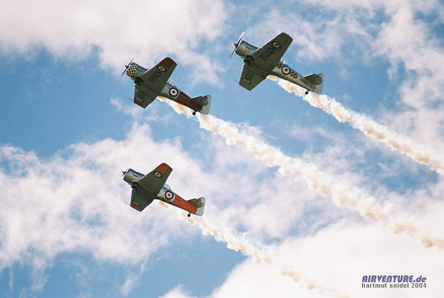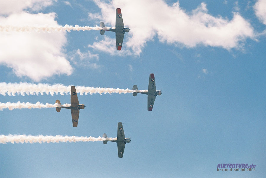 fliegen ihre Vorführungen mit vier Maschinen vom Typ North American Harvard. Der Leader des Roaring Forties Aerobatic Team ist Gavin Tretheway, der bei
