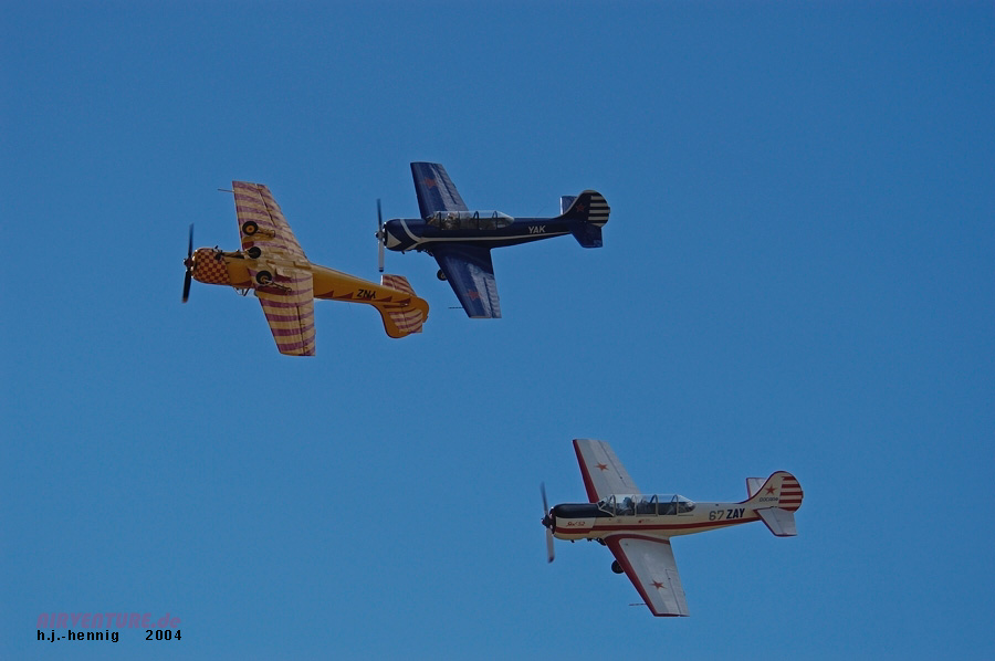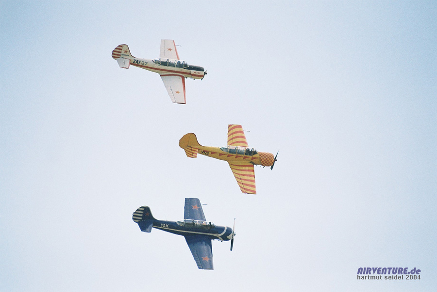 seine Vorführungen mit fünf Maschinen des russischen Typs Yakovlev Yak-52. Einer der Piloten des Teams, Brett Emeny, hatte bei der Warbirds over Wanaka