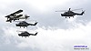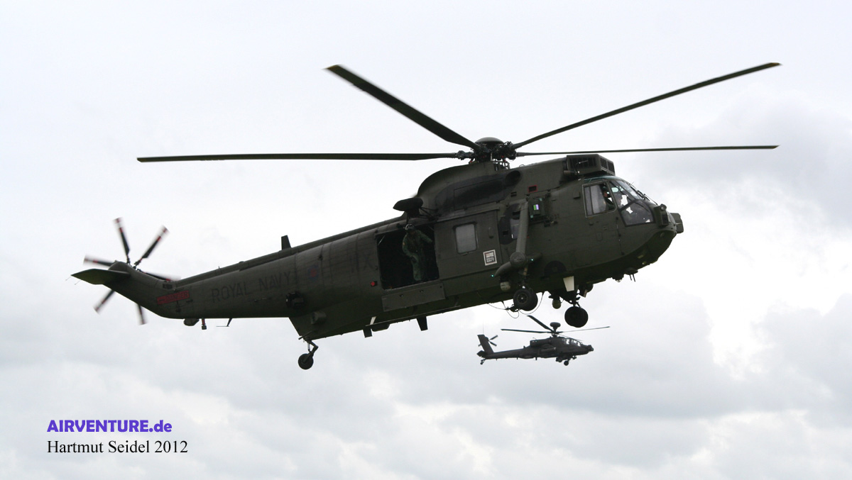 Die wichtigste Rolle bei der Luftlandedemonstration hatten die Transporthubschrauber vom Typ Westland Sea King HC 4 der in Yeovilton stationierten "Commando Helicopter Force", die in mehreren Wellen Soldaten und Ausrüstung der Royal Marines herangebracht haben. Bei der Vorführung waren mindestens acht Sea King im Einsatz. |