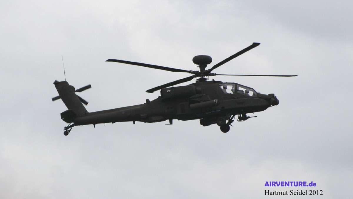 Bei der Commando Assault-Vorführung handelte es sich übrigens um eine kombinierte Einsatzdemonstration verschiedener Teilstreitkräfte. Hier ist ein Kampfhubschrauber vom Typ "Apache" der britischen Heeresflieger ( Army Air Corps ) zu sehen, der den Transporthubschraubern der Royal Navy Feuerschutz aus der Luft gegeben hat. |