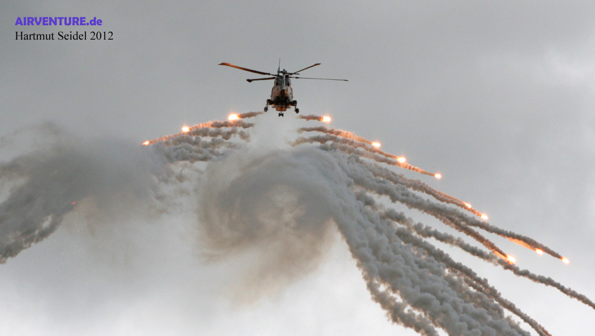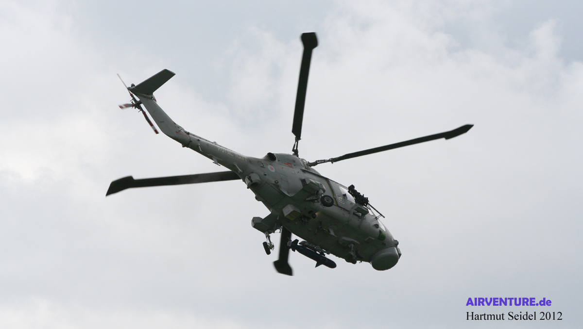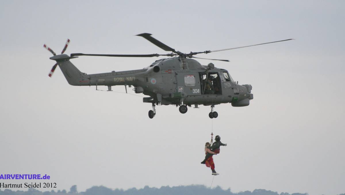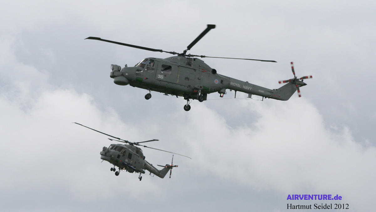 Zu den absoluten Highlights des Yeovilton International Air Day 2012 gehörten wieder mehrere grosse Einsatzdemonstrationen mit einer Vielzahl von daran beteiligten Luftfahrzeugen. Die in Yeovilton stationierte "Maritime Lynx Force" nahm als Thema ihrer "Role Demonstration" einen Anti-Piraten-Einsatz im Indischen Ozean. An der Vorführung waren insgesamt vier Hubschrauber vom Typ Westland Lynx beteiligt. |